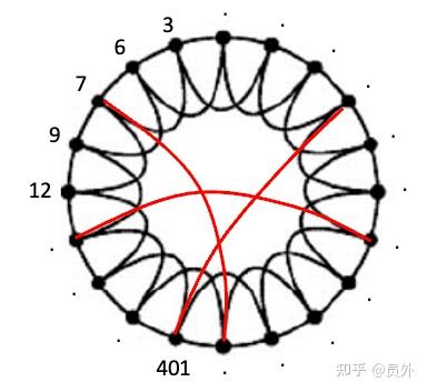 这就是small world的底层思路,说回到小世界(small world)网络,它是一种特殊的网络,在这种网络中,你可以快速地联系到网络中的其他人或点。这有点像“凯文·培根的六度”(Six Degrees of Kevin Bacon)游戏,在这个游戏中,你可以通过一系列其他演员,在不到六个步骤的时间里,将任何演员与凯文·培根联系起来。想象一下,你有一群朋友排成一个圆圈,如图5所示。每个朋友都与坐在他们旁边的人直接相连。我们称它为“原始圆”。